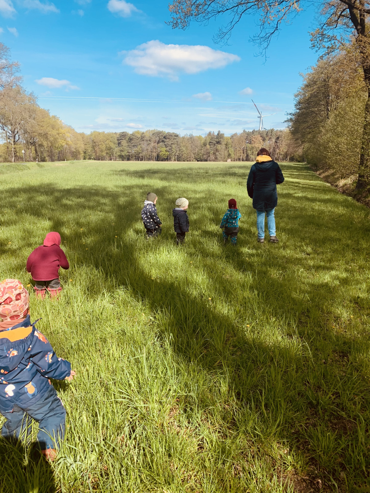 Wir sind bei fast jedem Wetter draußen in der Natur. Die Kinder erleben vielfältigste Bewegungsherausforderungen und können richtig viel entdecken.